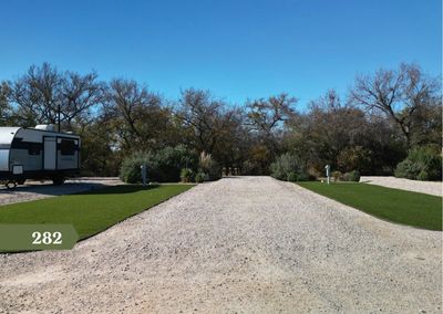 Enjoy added privacy and a serene Hill Country backdrop at Site 282, a desirable back-in RV site that backs up to a wooded green space, offering a peaceful setting rarely found this close to town. This well-positioned site comfortably accommodates a 45' RV plus a vehicle, making it ideal for both personal use and rental income potential. Located within the Arch Ray RV Resort, owners are just a short walk or golf cart ride from the on-property Arch Ray Restaurant, Winery, Brewery, and Distillery, as well as live music and community events at the amphitheater. Historic Main Street Fredericksburg is only minutes away, placing shopping, dining, and wine tasting right at your fingertips. Ownership offers flexibility and ease-bring your RV, leave it on-site, and take advantage of the resort's on-site rental management program, where owners keep 70% of the rental income. This makes Site 282 an excellent option for weekend getaways, seasonal stays, or income-producing ownership. Community Highlights: • Deeded RV site within a condominium regime • Backs to wooded green space for added privacy • POA fees include water, sewer, and high-speed internet • Owners pay electric, property taxes, and minimal liability insurance • Gated resort with paved roads, amenities, and planned future enhancements Whether you're looking for a quiet retreat surrounded by nature or a smart investment in one of Fredericksburg's most unique RV communities, Site 282 delivers privacy, convenience, and Hill Country lifestyle in one exceptional offering.